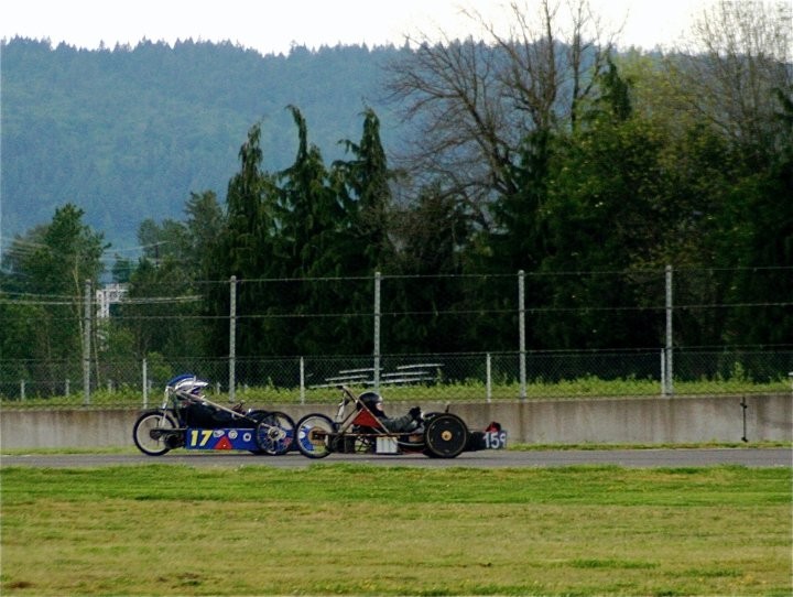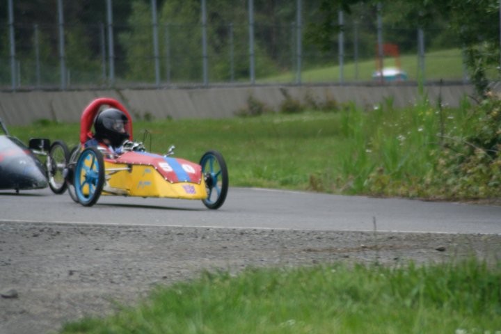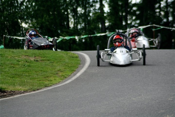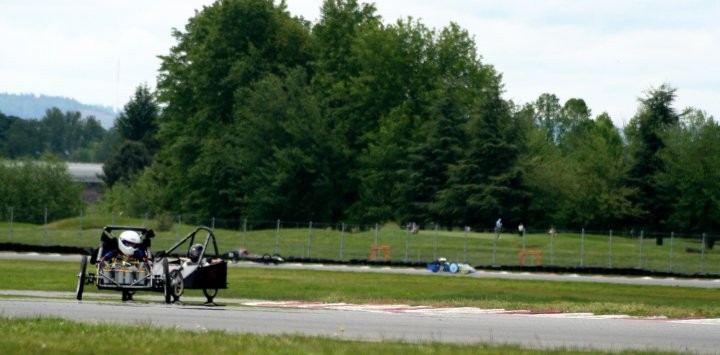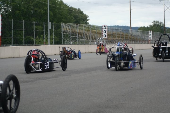 On the broken axles. Yes I know that Willamette broke at least 4 front axles during the race (not counting 007's wreck). There was #99 pictured, #113 that broke its axle and is the one that slid through the transponder grid, my car #38 driven by Ron broke its axle going into the 270 degree turn and ended up buried 3 feet deep in the tires, and car #104 broke as well. I think that was all. I am not sure why we have broken so many grade 12---12 mm axle bolts this year. They are the same style we have always used and usually we only brake one or so in a full season. With 20 cars and 15 races that is not too bad. This year we have broken at least a dozen probably closer to 2 dozen. Faulty bolts, kids (and me) over welding/heating the bolts, or just bad karma??? Any suggestions????