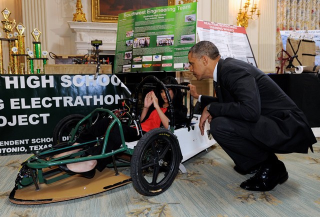I am down here in Tampa, Fl with Electathon Of Tampa Bay. I met the team from San Antonio a few years ago at Pensacola. The team was half girls and they were all go getters. I caught a glimpse of the corner of the car while watching the national news. Went on line and found the pix of the car and the pres. Can't get much higher than the White House.