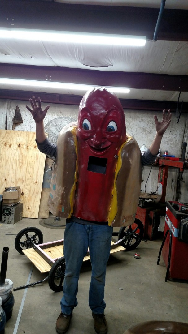 For Weenier's numbers--how about 111 with the middle 1 red for the hot dog and the outside two sort of rounded and white for the bun. But I don't think you will need numbers much as your car will be very recognizable. My Wolverine car everyone in the NW is #38. Your car looks like fun. Enjoy