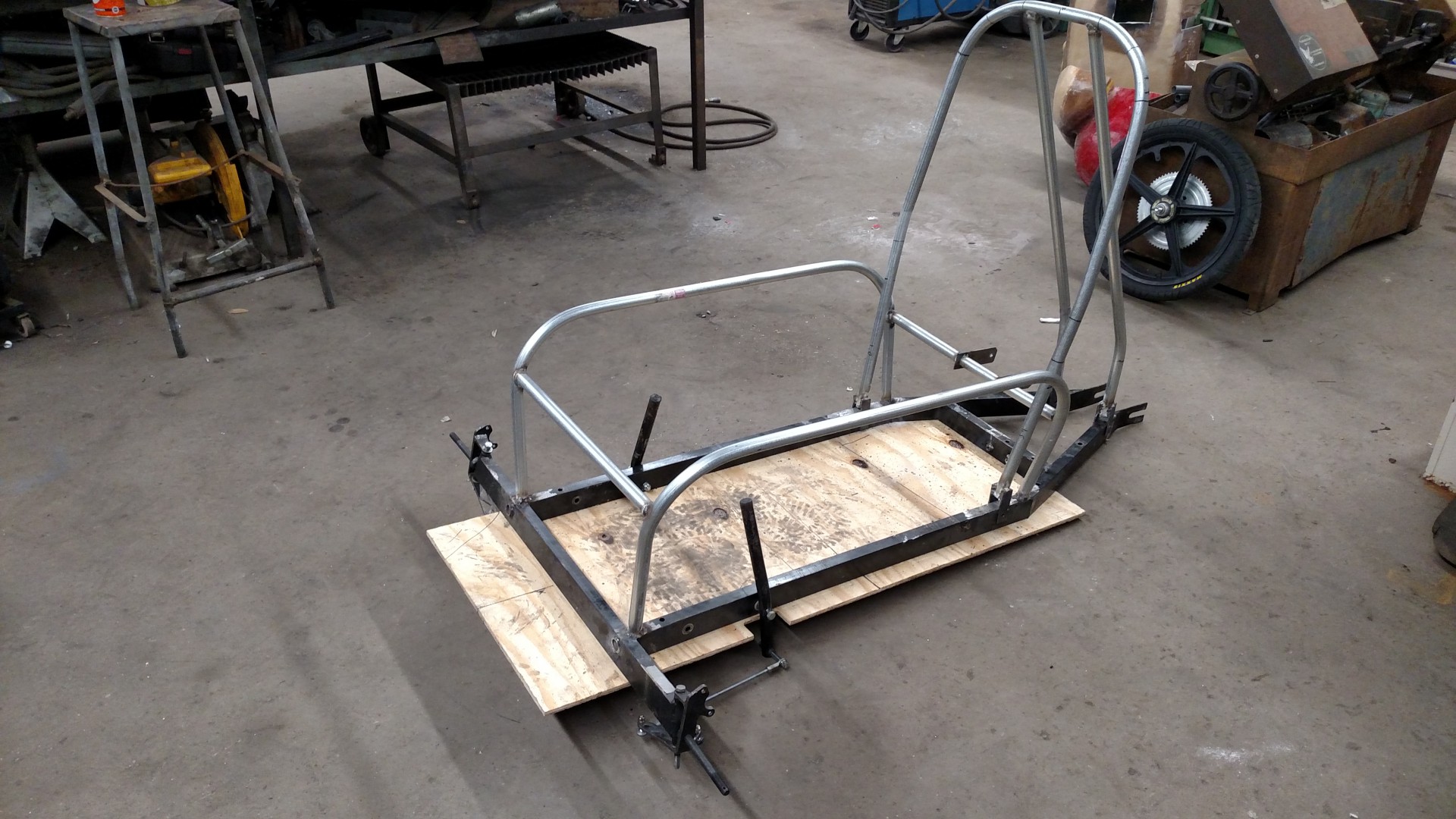 More progress has been made. Brakes, seatbelts, steering, and battery mounts all done. Less than a week till race day. Still gotta be wired, painted, and get instrumentation. This kid has plenty to do.
