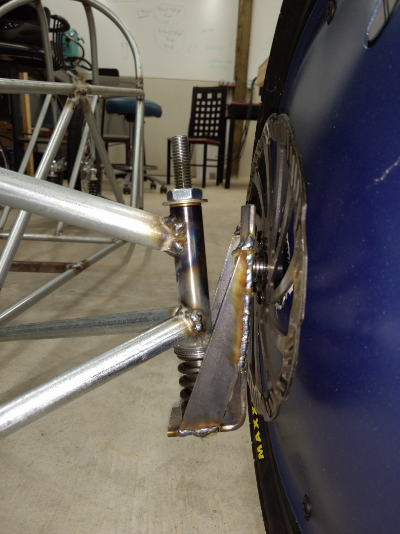 swing arm on the rear. It's only about an inch of travel but