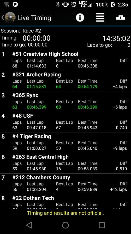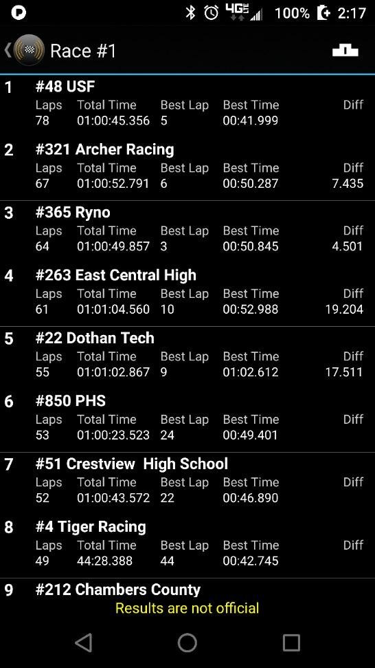 Nice job in the Open class. Was it 15 laps by USF? I think this is the record for a single race. The last time we ran (2017), we did 14 laps in 58 minutes but did not have enough power to do a 4 minute lap to get in under the 2 minute rule.