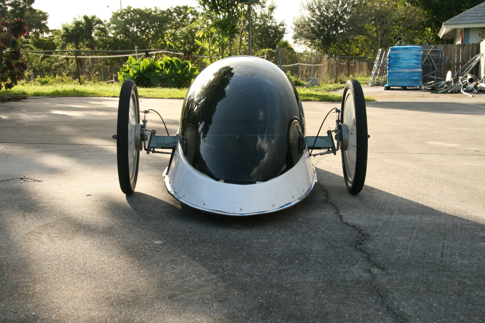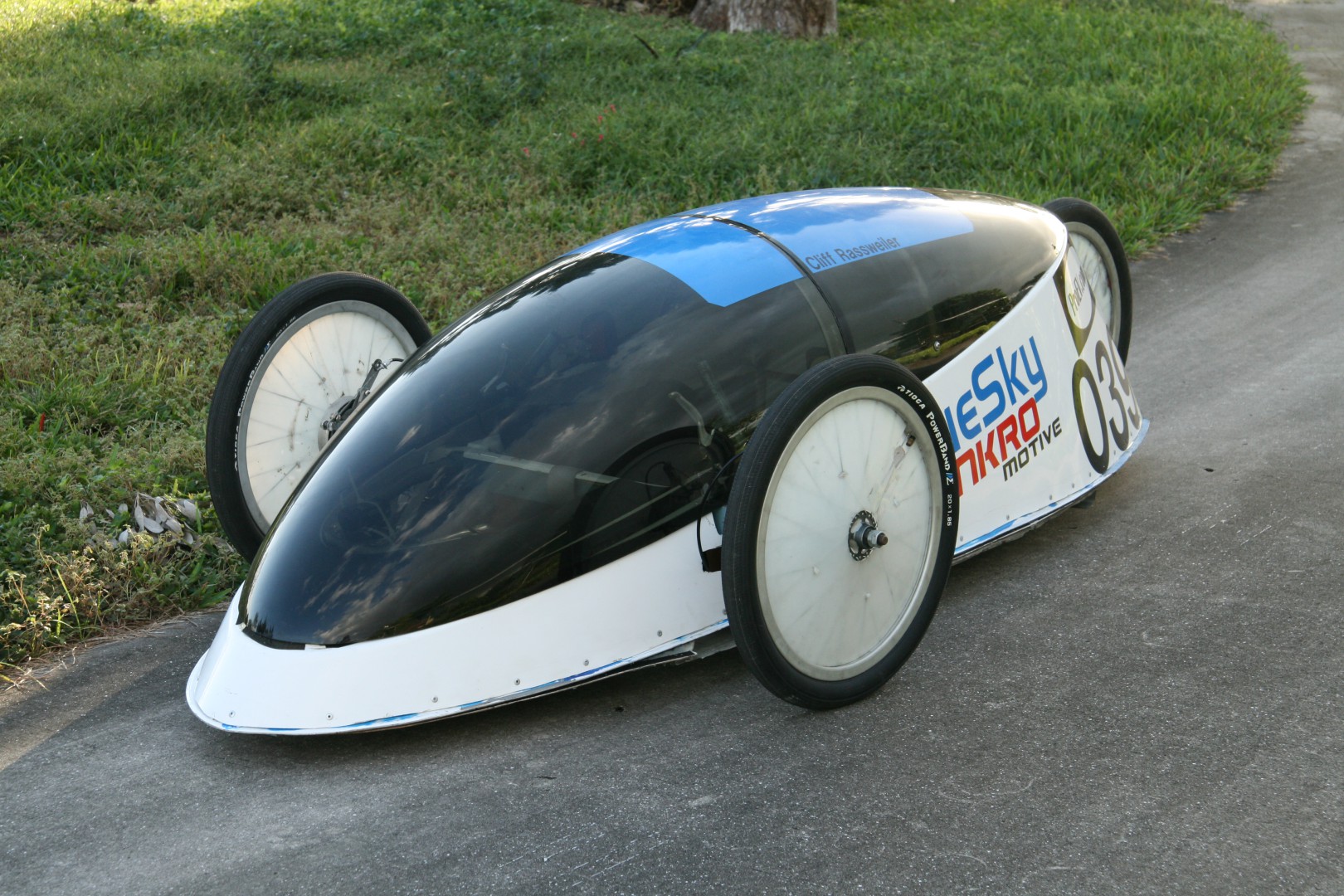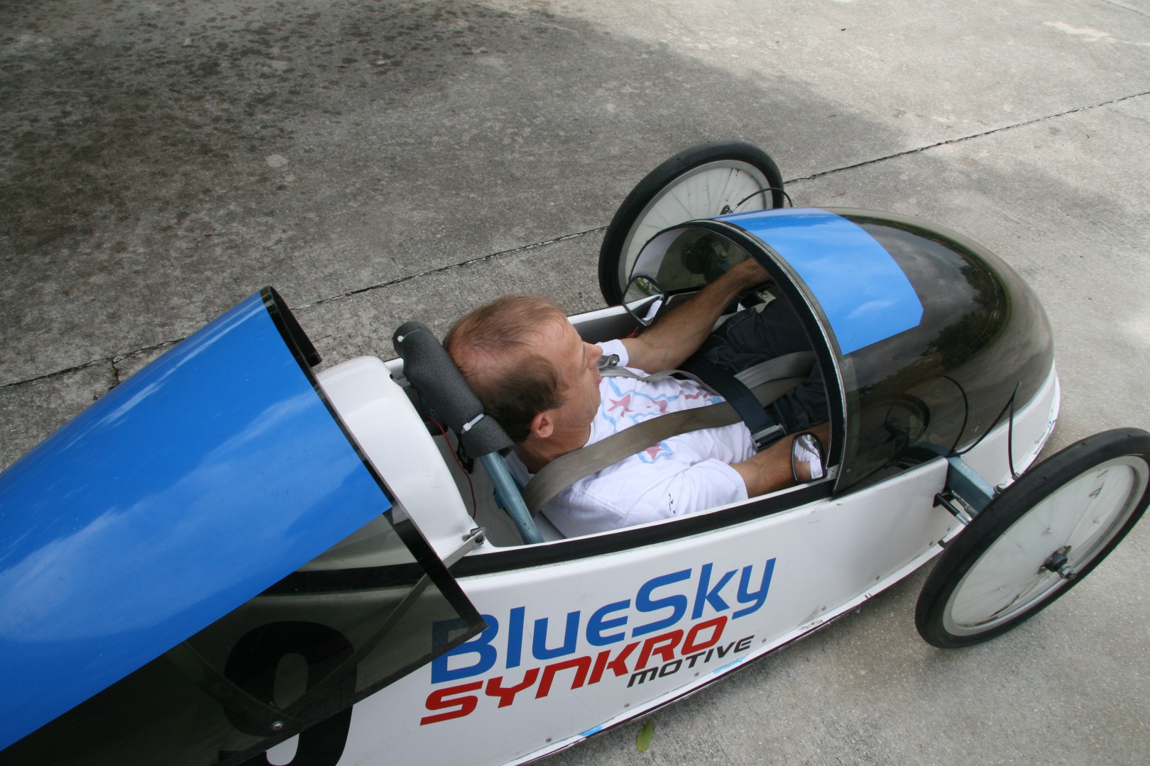 Here are some pictures of the ex-factory Blue Sky Design Aero Coupe. My understanding is they raced it once before putting it up for sale. We purchased it in 2011 and having been racing and modifying it since. The way they did the body made a very slick low drag design but with some cost to driver ergonomics. The driver's knee almost touch the canopy and to see ahead, one had to spread their knees. To see the apex, tilt the knees right or left.