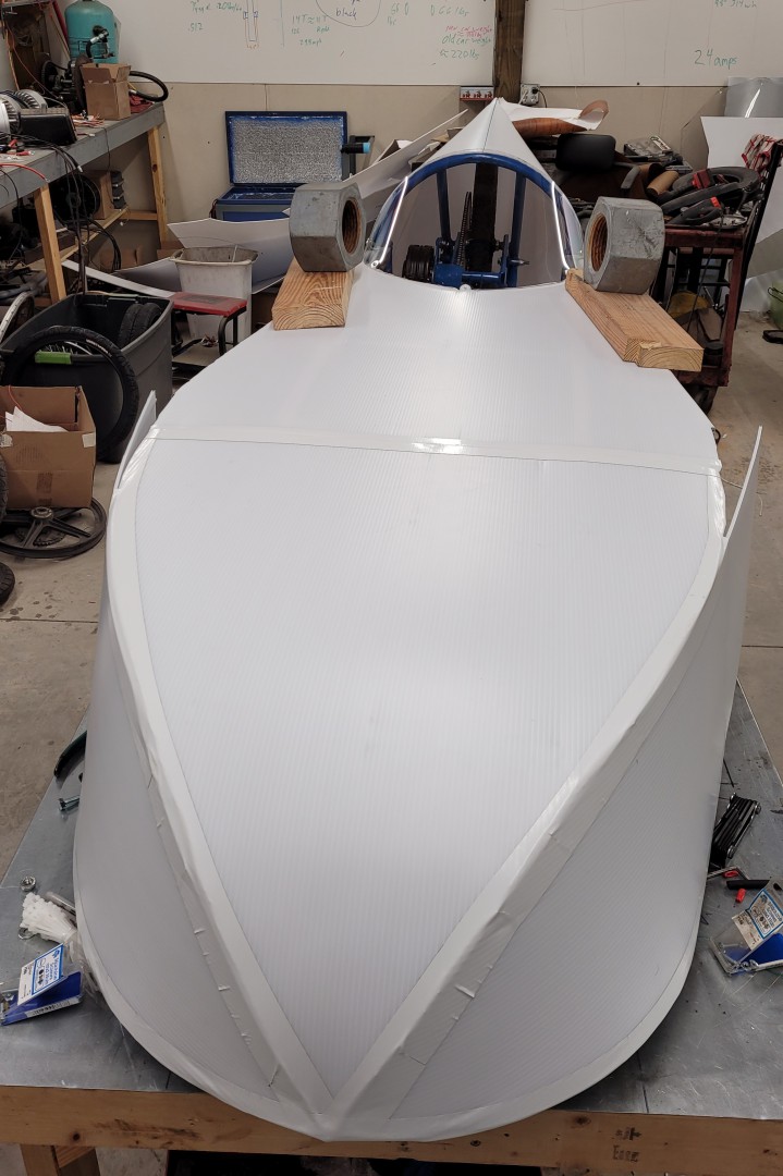 I think I can make the next car a little narrower and still meet the required 24" minimum track width. Also I'll likely do more of a forward windshield design like some velomobiles.