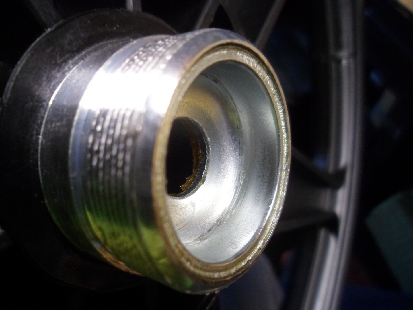 ...& was thinking about (maybe) trying to thread the outside of this hub, to accept an adapter (like mentioned above) that a rotor can be mounted onto