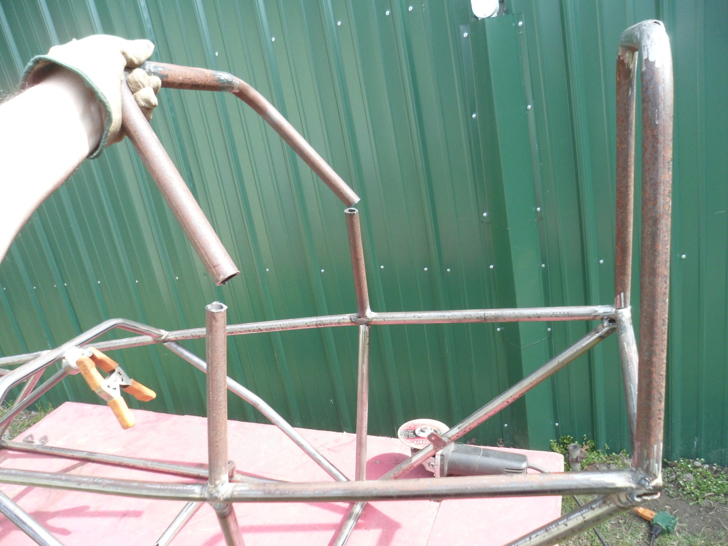 I also, used a ratchet strap to add "upper pressure" for holding the roll cage together, for welding