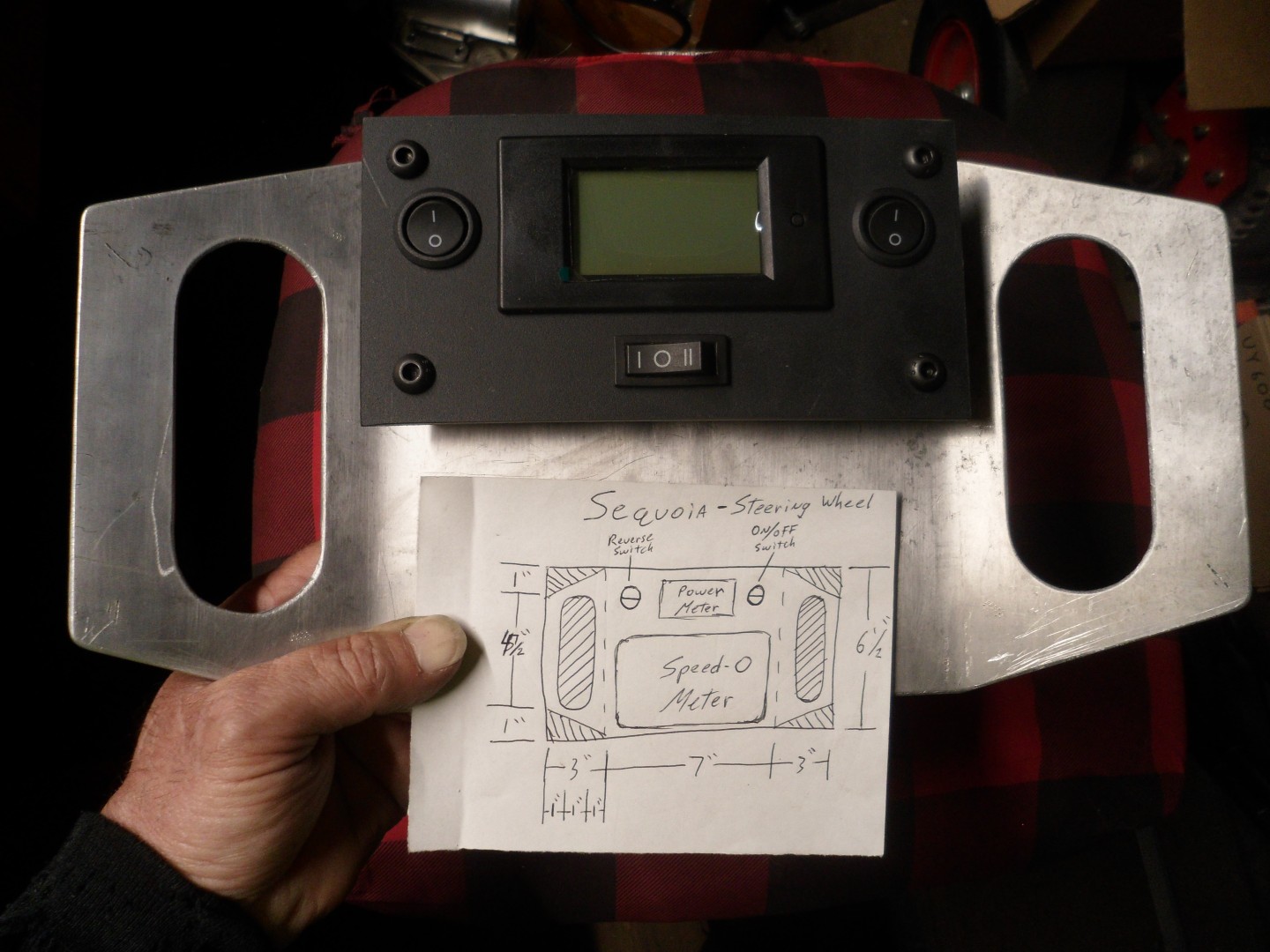 To make the on steering wheel "instrument holder" for the gauges & switches, I harvested some ridged plastic from the back of an old TV