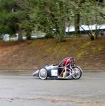 The first car from David Douglas. This car has a couple of things that other electrathon cars used to use, or have never used. Car #55 was built back in 1997. It made use of a carbon fiber body with an aluminum frame. The Boeing aircraft company helped design the body with David Douglas students building the body to help with the aerodynamics of the car. Another unique thing about #55 is it's drive system. It consists of using a Scott 1.6hp motor for movement. This car has no chain drive. It's the only car in electrathon racing to have a belt drive system instead. The graduating class that built it has gone; so, the car sat in a room collecting dust until recently last year. Zaine Stapleton arrived at David Douglas in the fall of 2006 as a freshmen and had seen the car before. He wanted to take the class with the car in it, but had to wait until his junior year. Last year, Zaine asked his teacher if he could take the car home during winter break to work on it to have it back up and running and got the okay. The race that reserected the car was the 2009 Mount Hood Community College race hosted by Centennial High School. Care #55 was at six races in the spring, DaVinci Days in the summer of 2009, and the Eugene Celebration 2009 race in the fall. The car has been running ever since.