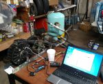 I used a jackshaft so I could run the same sprockets on the test rig as on my car while keeping the hydraulic pump speed within its normal operating range. The pump outputs to a hose with a ball valve and a pressure gauge. The jackshaft has a speedometer calibrated to the size of the drive wheel of my car. The motor is run at a speed that gives the desired wheel speed and then the ball valve is closed to the point that the amperage draw reproduces the same load that I have seen in race conditions. The pressure, speed, voltage, and amperage draw are noted and then become the baseline for comparison of any subsequent changes. If I can find a change that allows for the same speed and pressure to be achieved at a lesser wattage then I have improved my efficiency.