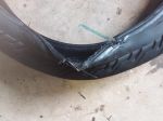 Of interest to anyone running Rant Squad tires in high heat, we had a second tire fail during the race. This was a spare front tire sitting in the sun in the back of the rescue truck. Both tires failed in the same way, at the same point. It looks to me like the wire bead is not attached to itself but held by the rubber of the bead. When it gets to hot and there is pressure, the wire comes loose from the tire and the side wall rips.