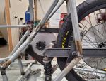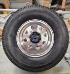 Consequently I decided on much shorter and wider wheels and tires than what I usually use. These are actually trailer tires on 8x2.75 inch aluminum mini bike wheels. I'm not sure how well they're going to work out.
