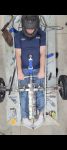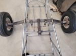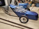 I built this one specifically for shorter parking lot style tracks instead of the speedway type track that my last car ran on. Consequently I made some design decisions toward that end. I moved the nearly 70 lbs of batteries forward so they were centered on the front axle in an effort to reduce the car's tendency to want to roll over on excessively fast sharp turns. For this same reason I chose to use shorter, wider wheels and tires so it would have the grip necessary to take those corners and the strength to not break the outside front wheel in the process. (i.e. taco-ed bike wheel) Race-ready, car and driver weighed in at just over 400lbs.