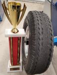 The track was very old asphalt that had eroded down to be exceedingly rough as the aggregate in it was very exposed. This created a cheese grater effect as the car took the numerous tight turns at 20ish mph and the limited traction caused a bit of understeer making the grater effect worse. After what I believe was 127 laps in two 1 hour races, the front tires are pretty well shot. The wheels, tires and overall design of the car proved extremely durable as I demonstrated in a crowded 180 degree turn when I ran the right front wheel completely up and over a 6" curb at about 18mph without any apparent damage.