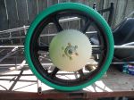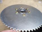 The rear wheel has a threaded on freewheel unit, that I added a 72T #35 sprocket to Here's how its attached/installed on the freewheel unit
