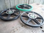 Wheels I got (3) plastic BMX bicycle mag wheels ...(2) fronts (for the front) ...& (1) rear (for the rear)