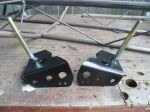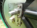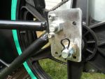 ...& then, to comply with #8, I used a couple of 1/2" rod Pins (from a riding lawn mower) in conjunction with a couple of 1/2" Loc-Nuts, to mount the front wheels